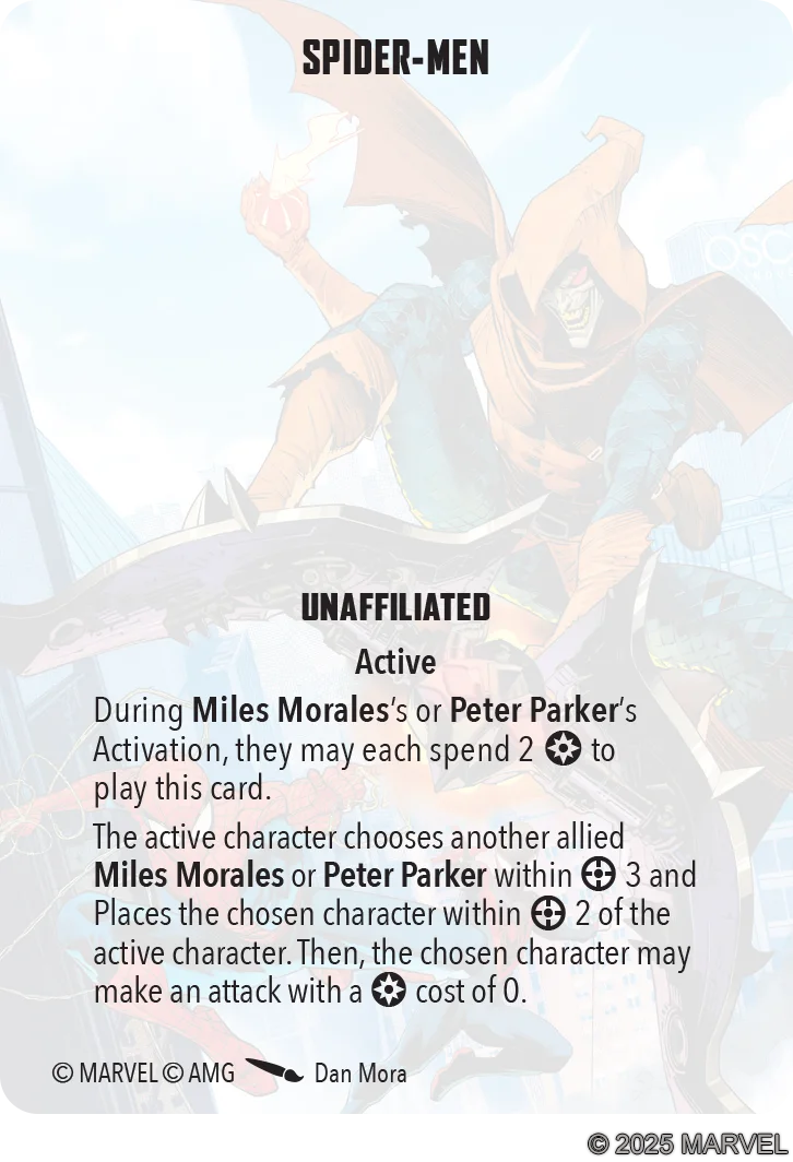 Read moreThree heroes with three different methods leads to endless ways to swing into battle. Ultimate Spider-Man, Spider-Man 2099, and Prowler stand ready to change the game and alter the web of destiny. Which of them will you bring into the fight?